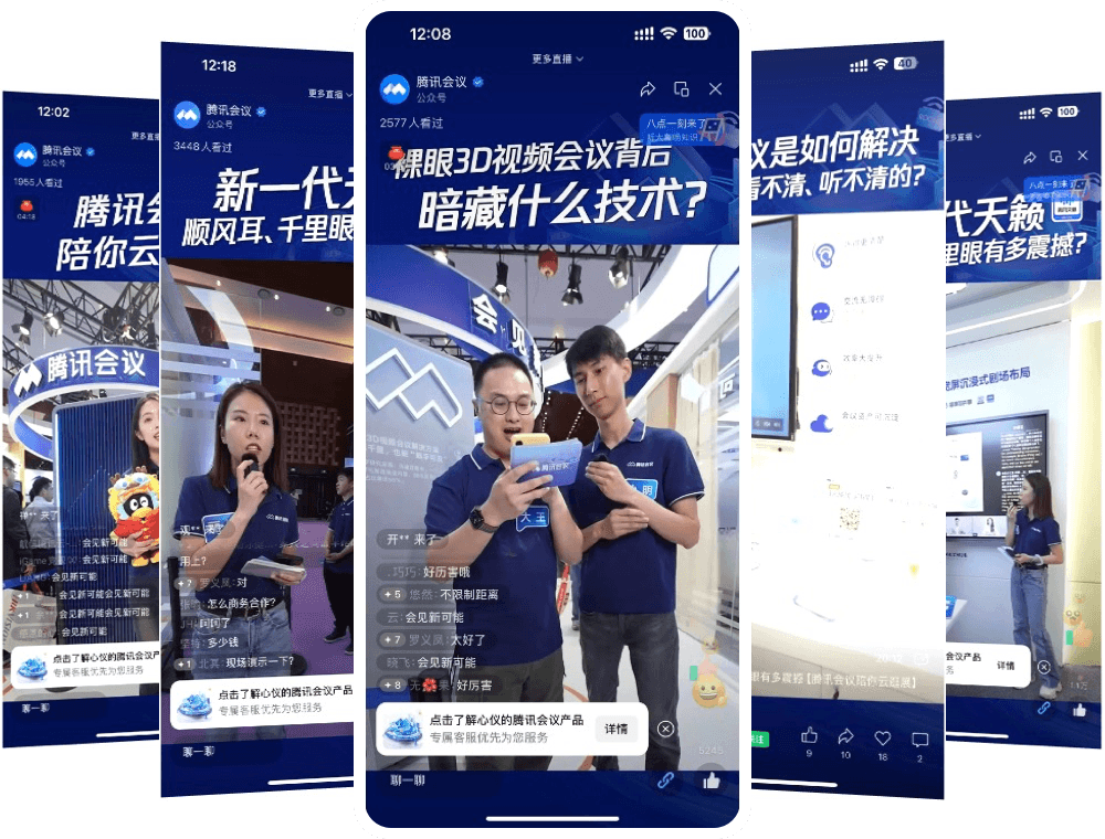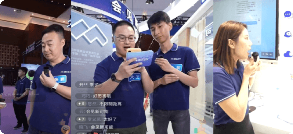 北京InfoComm China展会期间,微吼为腾讯会议提供一站式逛展直播服务,涵盖现场展台直播、合作伙伴MAXHUB探访直播拍摄、现场综合产品解决方案演示等全流程直播内容。