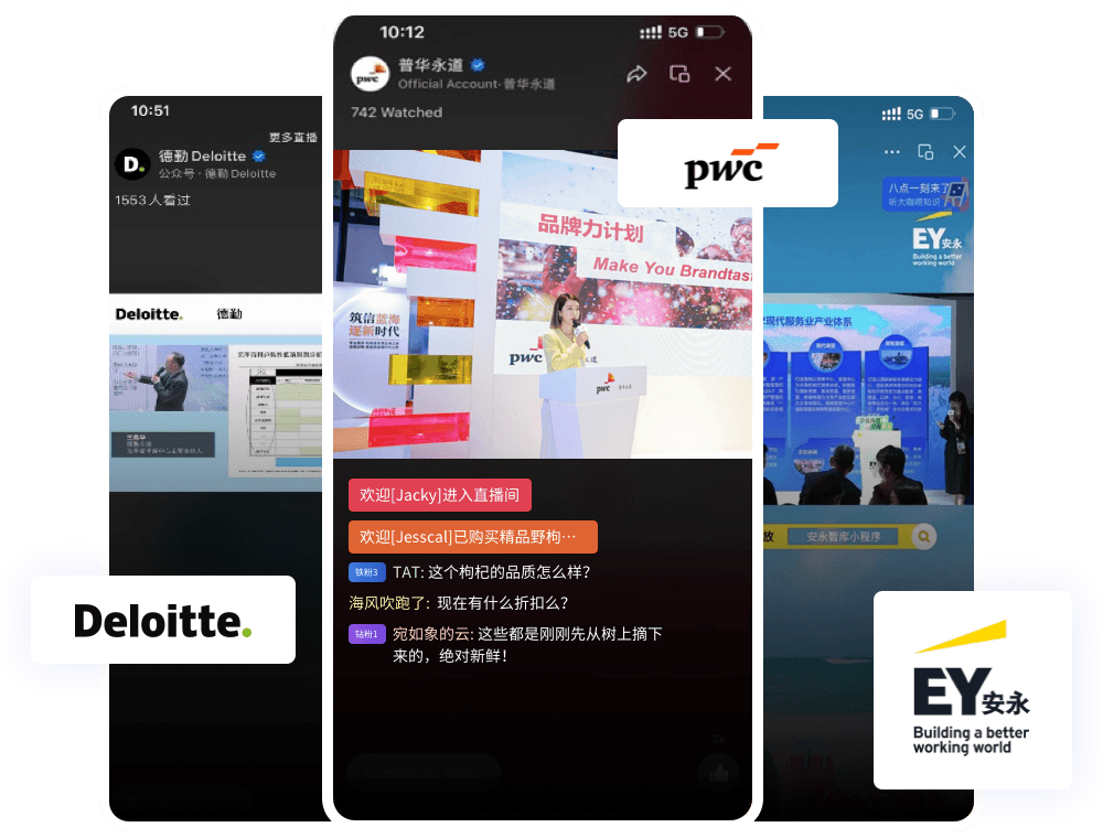 微吼为参展的德勤、安永、普华永道分别提供了直播全案服务。